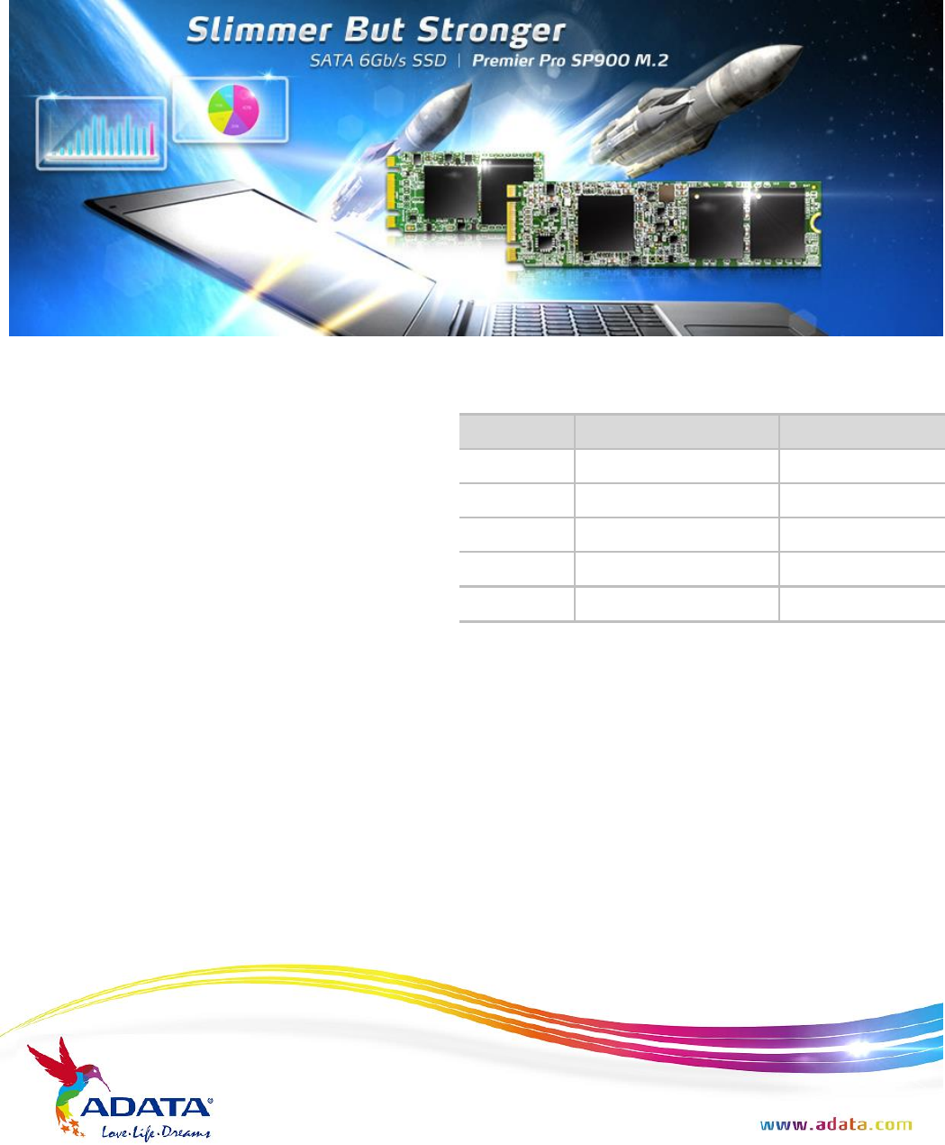 generation – “faster and smaller”. The SP900 M.2 2242 and 2280 are even smaller than a 2.5” SSD and
